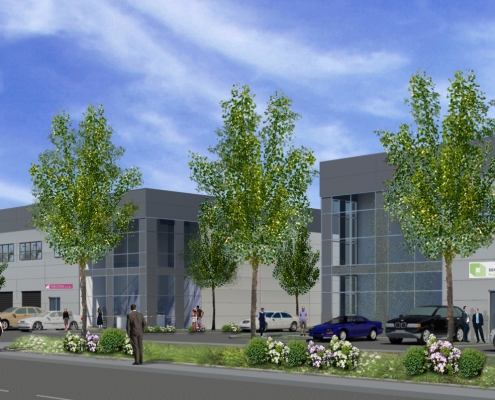 Urbanistické řešení vychází z dopravního napojení areálu na ulici Toužimskou. Odtud vede páteřní vjezdová komunikace, ze které odbočují do stran ulice mezi jednotlivými bloky s nájemními jednotkami. Ulice mezi bloky jednotek i vjezdová komunikace budou osázeny alejemi stromů a vytvoří tak příjemné prostředí pro práci a podnikání.