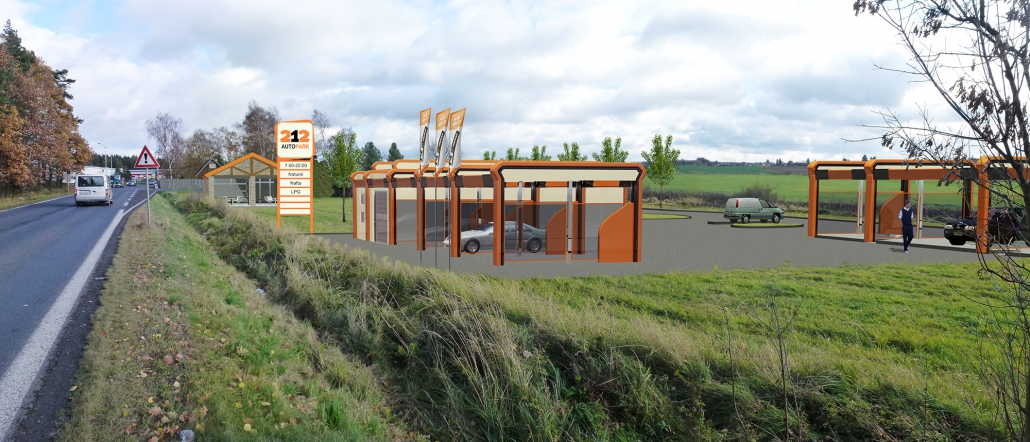 Projekt se skládá z objektu pro portálovou myčku, na něj navazující objekt technologie a kryté wap mytí. Na zděné objekty navazují 3 otevřená wap stání. Součástí areálu jsou 4 přestřešená stání s oboustrannými obslužnými vysavači, jeden stojan na mytí a údržbu vnitřních koberců, 1 umyvadlo na mytí rukou a v neposlední řadě zde také bude kompresor pro možnost dohuštění pneumatik a stojan na doplnění vody. Všechna výše uvedená zařízení budou umístěna na zpevněných plochách se živičným povrchem. Součástí celého projektu je i revitalizace stávající ČSPH, kde je vybudován nový kiosek sloužící jako prodejna s kosmetikou, občerstvení čekajících zákazníků, výdejna žetonů na mytí vozů a platební terminál ČSPH. Kiosek má sedlovou střechu a architektonicky navazuje na mycí centrum.